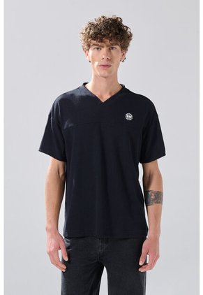 KOAJ Camiseta Azul Intensa Cuello V En Algodón Con Arte College