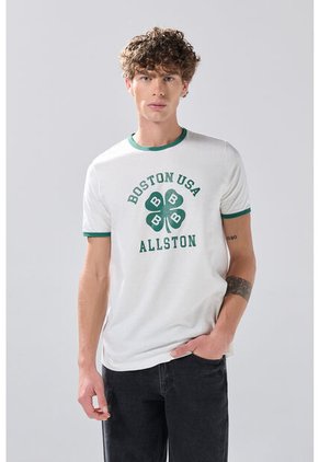 KOAJ Camiseta Crema College Manga Corta Con Contrastes Verdes