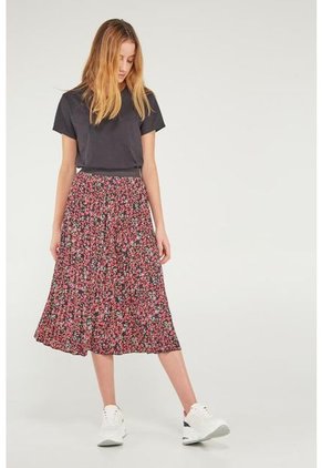 Falda para mujer, en tela de cuerpo con motivo, plisada y cintura elástica.