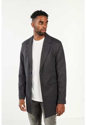 Gaban para hombre, tela tipo paño, cuello alto, bolsillos laterales y bolsillo interno y cierre frontal con botones.