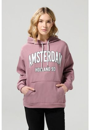 Buzo con capota para mujer con ruedo y puños en rib, manga larga, cordón para anudar, bolsillo delantero, diseño college en frente y un fit oversize en el cuerpo. El estilo juvenil y descomplicado de esta prenda será perfecto para combinar con tu mejor jean para ir al cole, a la U o a la ofi.