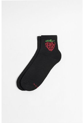 Medias azules intensas cortas para mujer cuentan con elástico en el borde superior, diseño de fresa en el costado y detalles con finas texturas acanaladas. Camina o disfruta de tus planes diarios con una comodidad incomparable, lúcelas con tus tenis Koaj favoritos y dales estilo a tus pies.