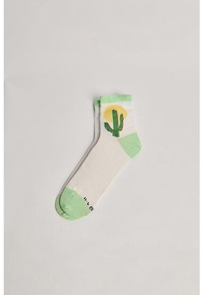 Medias para mujer cortas unicolores, elaboradas en una mezcla de polialgodón suave al tacto, cuentan con diseño de cactus en los costados, elástico en el borde superior y finas texturas acanaladas. Perfectas para cualquier día de la semana, podrás combinarlas con un par de tenis de plataforma y sentirte cómoda al caminar.