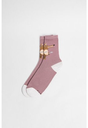 Medias para mujer largas rosa cuentan con diseños de lobo, elástico en el borde superior, texturas acanaladas y contrastes localizados en la punta y el talón. Combínalas con tus tenis Koaj favoritos y dales a tus pies un estilo 100% auténtico. ¡Te sentirás muy cómoda en cada paso que des!