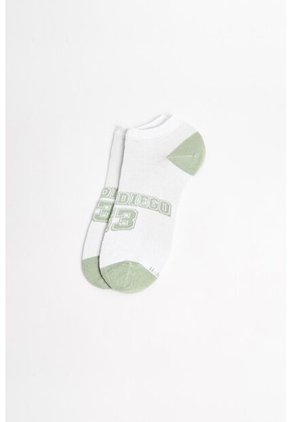 Medias para mujer tobilleras cremas claras cuentan con contrastes en la puntera y el talón, diseño college localizado, elástico en el borde superior y finas texturas de canal. Lleva el estilo y la comodidad en cada paso que des combinándolas con un par de tenis casuales, serán perfectas para tus planes cotidianos.