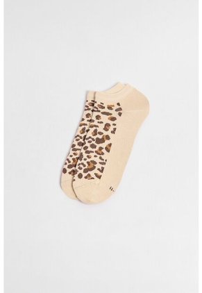 Medias para mujer tipo tobilleras kakis claras cuentan con diseños de animal print en contraste, elástico en el borde superior y finas texturas de canal. Lúcelas con un par de tenis altos y deja que el confort sea parte de tu estilo. ¡No vas a querer quitártelas!