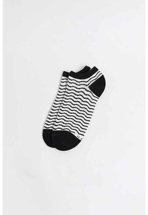 Medias cremas claras tipo tobilleras para mujer cuentan con contrastes negros en la puntera y el talón, diseños de rayas continuas, finas texturas de canal y elástico en el borde superior. Dales confort a tus pies combinándolas con tus tenis KOAJ de diferentes estilos, así caminarás con plena comodidad.