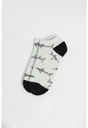 Medias tobilleras verdes claras para hombre cuentan con contrastes negros en la puntera y el talón, elástico en el borde superior, diseños continuos de tiburones y finas texturas de canal. Lúcelas con un par de tenis casuales y deja que el confort sea parte de tu estilo. ¡No vas a querer quitártelas!