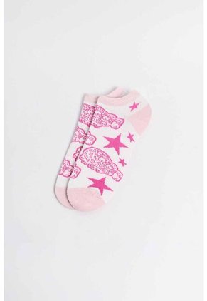 Medias cremas claras tobilleras para mujer cuentan con contrastes rosados en la punta, el talón y el borde superior, finas texturas de canal y diseños de Billy, Goat y Gruff (Toy Story, Disney). Deja que la suavidad y el confort sean parte de tu total look, combínalas con tus tenis preferidos para disfrutar de tus rutinas diarias.
