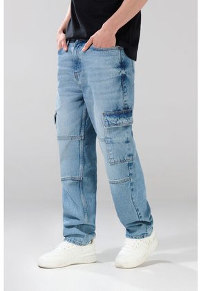 Tennis Jean Loose Tiro Medio Azul Para Hombre