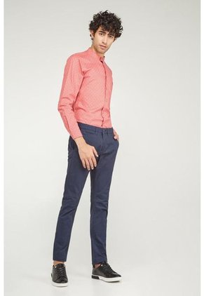 Pantalón para hombre, en tela de cuerpo unicolor, con tiro medio, bolsillos verticales y de ribete doble en posterior.