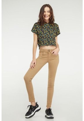 Pantalon push up para mujer, en tela de cuerpo unicolor, con tiro medio, y pretina ancha de doble botonadura.