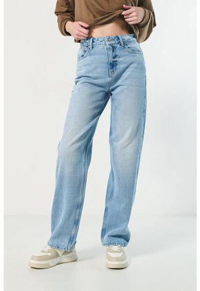 Jean 90´S para mujer en tono azul claro cuenta con desgastes de color localizados, 5 bolsillos, diseño de bota recta, tiro alto, pretina con botón metálico y una silueta holgada al cuerpo. Crea un outfit retro combinando esta prenda con una camiseta tie dye y un par de tenis de plataforma. ¡Te destacarás en tu próxima salida con amigas!