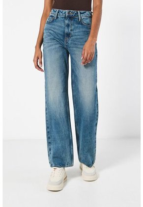 Jean para mujer, 5 bolsillos, tiro alto, lavado azul medio