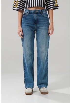 Jean azul medio 90´S para mujer cuenta con diseño de bota recta, 5 bolsillos funcionales, tiro alto, pretina sencilla con botón metálico y una silueta holgada en el cuerpo. Esta prenda es perfecta para combinar con tu mejor suéter y crear un total look retro ideal para los planes cotidianos o con amigos.