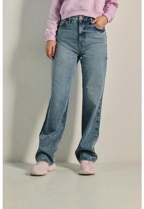 Jean tiro alto 90´S para mujer en tono azul claro cuenta con 5 bolsillos funcionales, cierre delantero con cremallera oculta, bota ancha, efectos con desgastes de color y una silueta holgada. Crea un total look vintage con esta prenda, un clásico que podrás combinar con tus suéteres o camisetas favoritas.