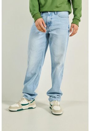 Jean 90´S para hombre en tono azul claro cuenta con 5 bolsillos funcionales, bota recta, tiro bajo, efectos con desgastes sutiles de color y una silueta holgada al cuerpo. Lleva tu total look al próximo nivel con esta prenda, combínala con una camiseta básica y lúcela en tus planes diarios o más descomplicados.
