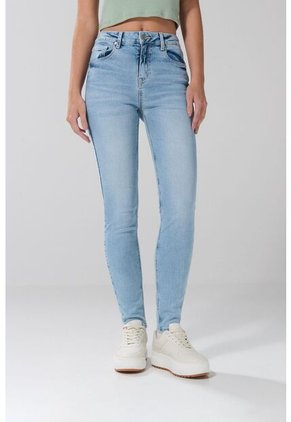 Jean azul claro tipo jegging para mujer cuenta con pretina sencilla con botón metálico, tiro alto, ligeros desgastes localizados, 5 bolsillos y un ajuste ceñido al cuerpo. Lleva las últimas tendencias en tu total look combinando esta prenda con suéteres, camisetas o buzos. ¡Lucirás espectacular!
