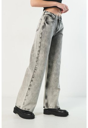 Jean gris claro tipo palazzo para mujer cuenta con tiro alto, 5 bolsillos funcionales, diseño de bota ancha, costuras negras visibles, pretina con botón metálico y un fit holgado en el cuerpo. ¡Esta prenda está en tendencia! Combínala con camisetas básicas y tenis altos, así crearás un total look perfecto para tu próxima salida con amigas.