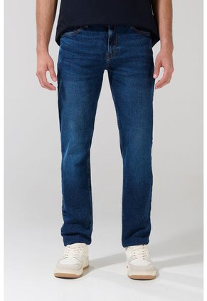 Jean slim para hombre en tono azul oscuro cuenta con 5 bolsillos funcionales, costuras visibles en contraste, tiro bajo, cierre delantero con cremallera oculta y un ajuste ceñido al cuerpo. Lleva las últimas tendencias de la moda en tu look combinando esta prenda con tu mejor suéter para disfrutar de tus salidas con amigos.