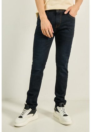 Jean skinny para hombre en tono azul intenso cuenta con 5 bolsillos, detalles con costuras cafés visibles, cintura con botón metálico y un fit ceñido al cuerpo. ¡Esta es una prenda infaltable que debes tener en tu guardarropa! Vístela con tus camisas preferidas y crea estilos diferentes para cada ocasión.