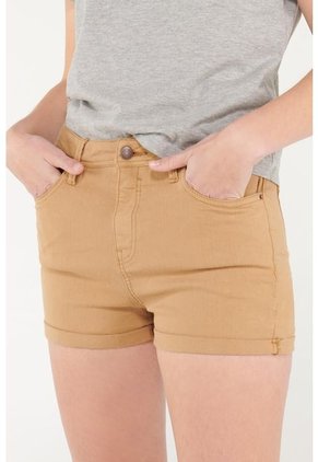 Short para mujer, 5 bolsillos, en tela de cuerpo unicolor, tiro alto