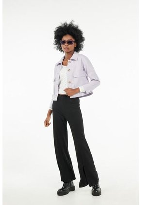 Sobrecamisa de cuello solapa y manga larga acabada en puño. Bolsillos de parche en delantero. Cierre frontal con botones.