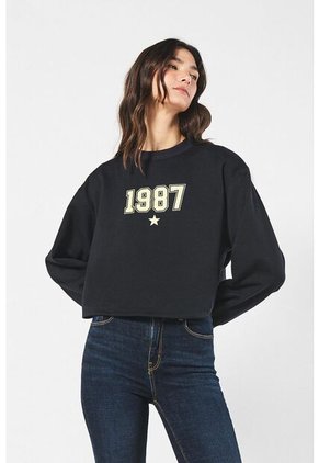 Buzo crop top azul intenso para mujer cuenta con estampado college en frente, cuello redondo, manga larga, puños tejidos en rib y un fit ligeramente ajustado en el cuerpo. Incluye en tu look un tono tan versátil como el de esta prenda y luce un outfit cargado de estilo que podrás llevar a tus planes casuales o descomplicados.