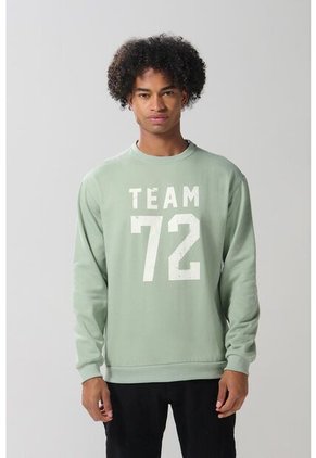 Buzo cuello redondo unicolor para hombre con tejido en rib en puños y el ruedo, hombro rodado, con estampado localizado estilo College en el frente. Con esta prenda completa tu outfit y crea un estilo tan único como tú.