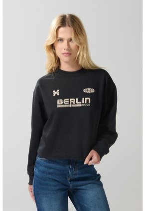 Buzo crop top cuello redondo COLOR para mujer, con tejido en rib en cuello y puños, con estampado localizado estilo College en el frente. Con esta prenda completa tu outfit y crea un estilo tan único como tú.