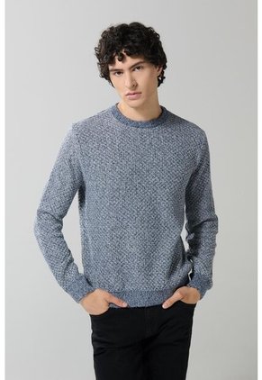 Suéter cuello redondo azul claro para hombre, elaborado en suave material tejido, cuenta con manga larga, diseños localizados en contraste y una horma ajustada al cuerpo. Esta prenda es un clásico con el que lucirás a la moda en todo momento. ¡Con jeans o pantalones en dril te verás sensacional!