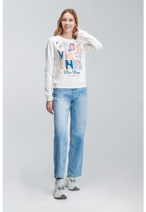Buzo cuello redondo para mujer con estampado en frente, estampado multicolor.