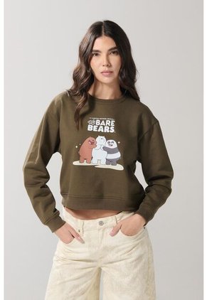 Buzo cuello redondo verde oscuro para mujer cuenta con puños y ruedo en rib, manga larga, diseño de Escandalosos estampado en frente y un fit ligeramente ajustado al cuerpo. Esta es una prenda perfecta para llevar a cualquier ocasión, con un jean jegging y un par de tenis altos lucirás en tendencia.