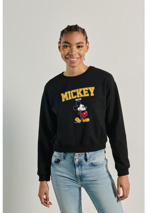 Buzo cuello redondo para mujer en tono unicolor, elaborado en suave tela perchada, cuenta con puños y ruedo tejidos en rib, manga larga, hombro rodado, diseño de Mickey (Disney) y un fit ligeramente ajustado. ¡Crea el outfit de tus sueños con esta prenda! Combínala con un jean mom y luce única en todo momento y lugar.