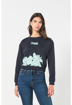 Buzo cuello redondo para mujer, con tejido en rib en cuello, bajo y puños, con estampado localizado en el frente de Hora de Aventura. Con esta prenda completa tu outfit y crea un estilo tan único como tú.