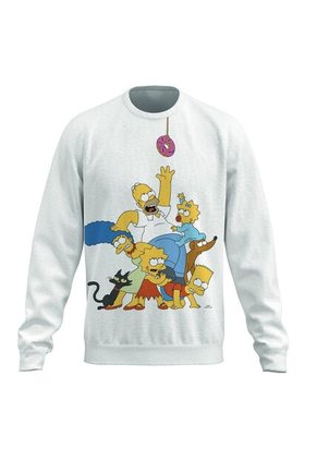 Buzo cuello redondo para hombre en tono unicolor cuenta con puños y borde inferior tejidos en rib, diseño de Los Simpson estampado en frente, hombro rodado y un fit ligeramente ajustado. Esta prenda es el complemento perfecto para recorrer el mundo con estilo, sin perder la comodidad.