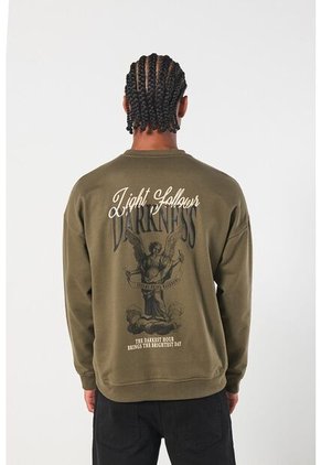 Buzo cuello redondo para hombre oversize con rib en puños, cuello y bajo, con estampado en frente y espalda, proceso de teñido en prenda Garment dye. Con esta prenda completa tu outfit y crea un estilo tan único como tú.