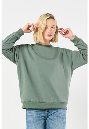 Buzo cuello redondo unicolor para mujer cuenta con ruedo y puños tejidos en rib, hombro caído, manga larga y un fit oversize en el cuerpo. Crea un look lleno de estilo combinándolo con un jean jegging y tus tenis Koaj favoritos, lucirás perfecta para ir a estudiar, trabajar o salir con tus amigos.