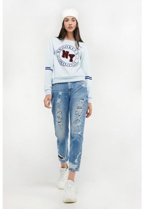 Buzo para mujer cuello redondo, con estampado college.