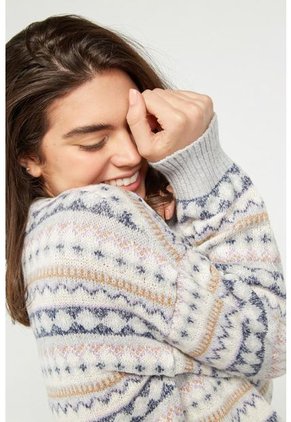 Suéter para mujer, cuello v, cuerpo tejido tipo Jacquard, silueta holgada.