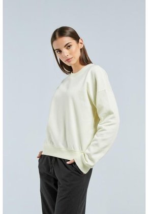 Buzo cuello redondo para mujer, en variedad de colores, hombro rodado. Bajo, cuello y puños en rib. Esta prenda tiene un diseño cool que complementará tus looks en todas tus salidas con amigos