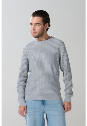 Suéter para hombre en tono unicolor, elaborado en suave material tejido, cuenta con cuello redondo, manga larga, detalles con texturas de cuadros y una silueta ajustada al cuerpo. Esta prenda es el complemento perfecto para que te destaques con tu look en todos tus planes causales. ¡Con un jean slim lucirás fantástico!