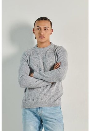 Suéter tejido para hombre gris, cuenta con un fit ajustado al cuerpo, cuello redondo y diseño. Esta prenda es la más apropiada para una salida casual o simplemente para crear tu propio estilo