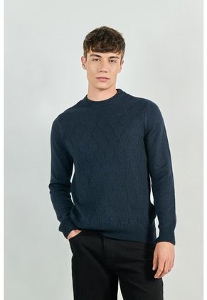 Suéter cuello redondo para hombre en tono azul intenso, confeccionado en material tejido suave, cuenta con detalles con texturas y un fit ligeramente ceñido al cuerpo. Resalta tu estilo en los días fríos combinando esta prenda con tus jeans Koaj favoritos, crearás un outfit cálido y en tendencia con el que te destacarás.