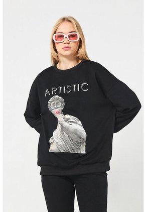 Buzo Para Mujer Cuello Redondo Color Negro Marca Ostu #40060433