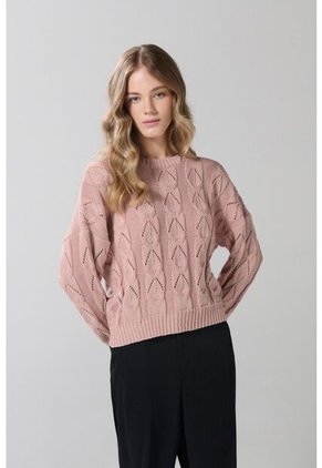 Suéter para mujer en tono unicolor, confeccionado en suave material tejido, cuenta con cuello redondo, manga larga, detalles con texturas, hombro rodado y una silueta holgada. Esta es una prenda atemporal con la que te sentirás identificada, combínala con un jean ajustado y luce siempre a la moda.