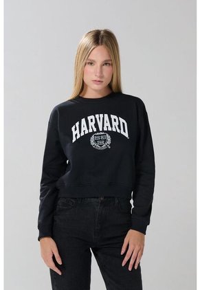 Buzo azul intenso cuello redondo para mujer cuenta con puños y ruedo en rib, manga larga, diseño de Harvard estampado en frente y un fit ligeramente ajustado al cuerpo. Infaltable en tu outfit, podrás lucirla con tu jean KOAJ favorito y marcar la diferencia en tus planes diarios o con amigos.