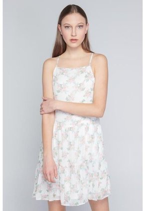 Vestidos para mujer, en tela estampada, con escote recto y posterior en encaje, falda holgada y corta.