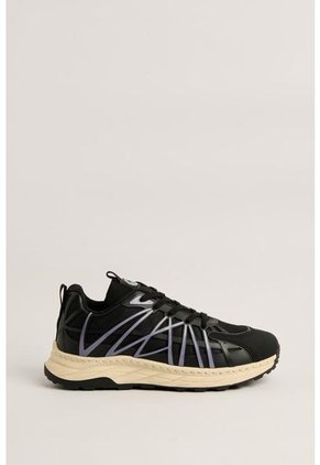 Tenis chunky para hombre con cortes en distintas texturas lleva malla en goma con detalles reflectivo en toda su capellada, suela semi ancha en contraste de color crema, perfecta para crear un look mas casual y atemporal con tirador en la talonera; Esta es un calzado básico en tu guarda ropa y es perfecto para crear infinidad de looks