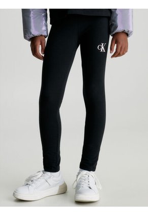 Leggings Negro De Algodón Con Monograma Calvin Klein